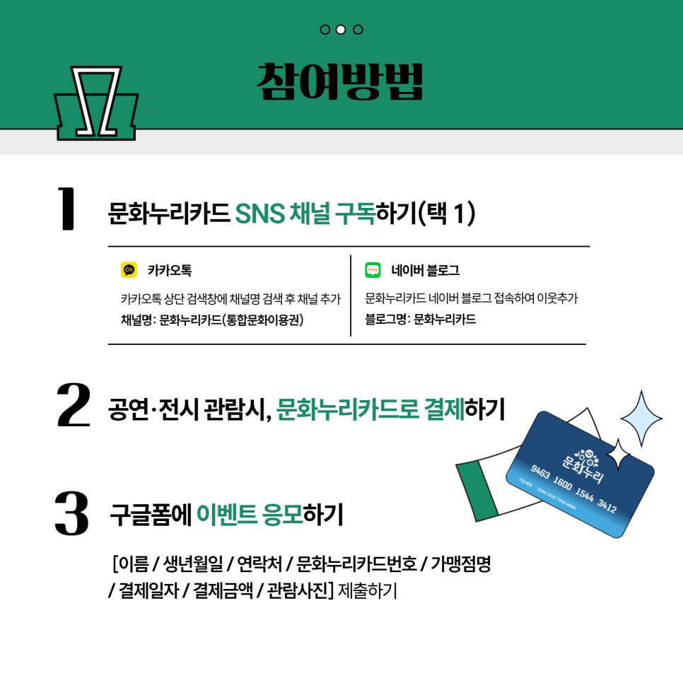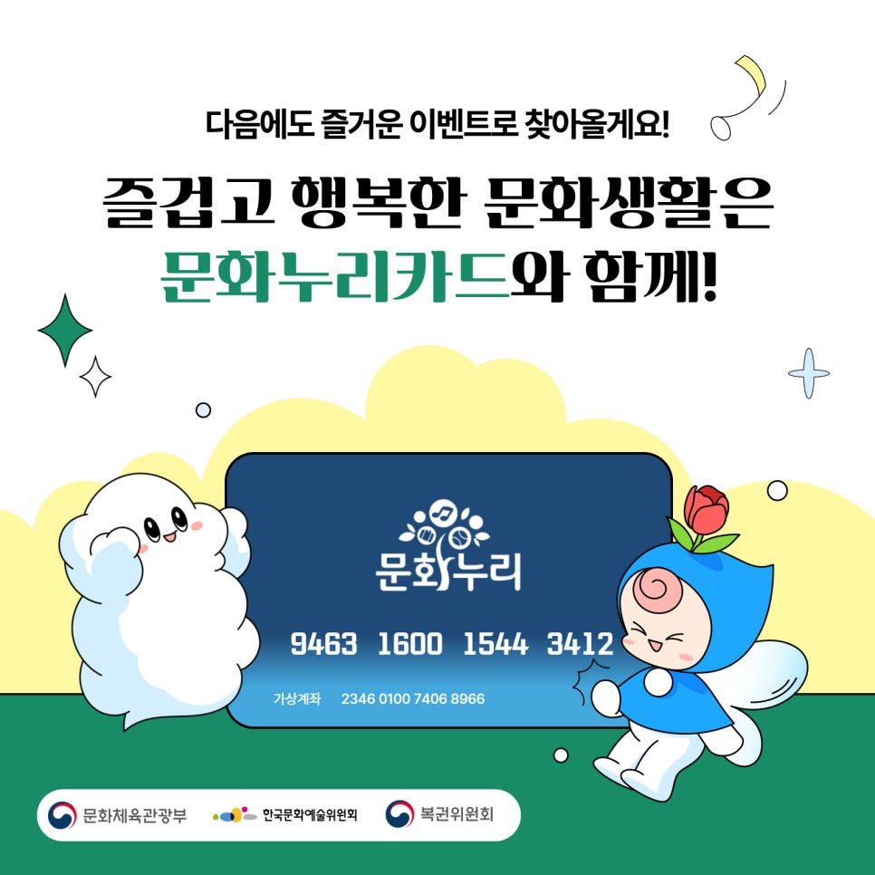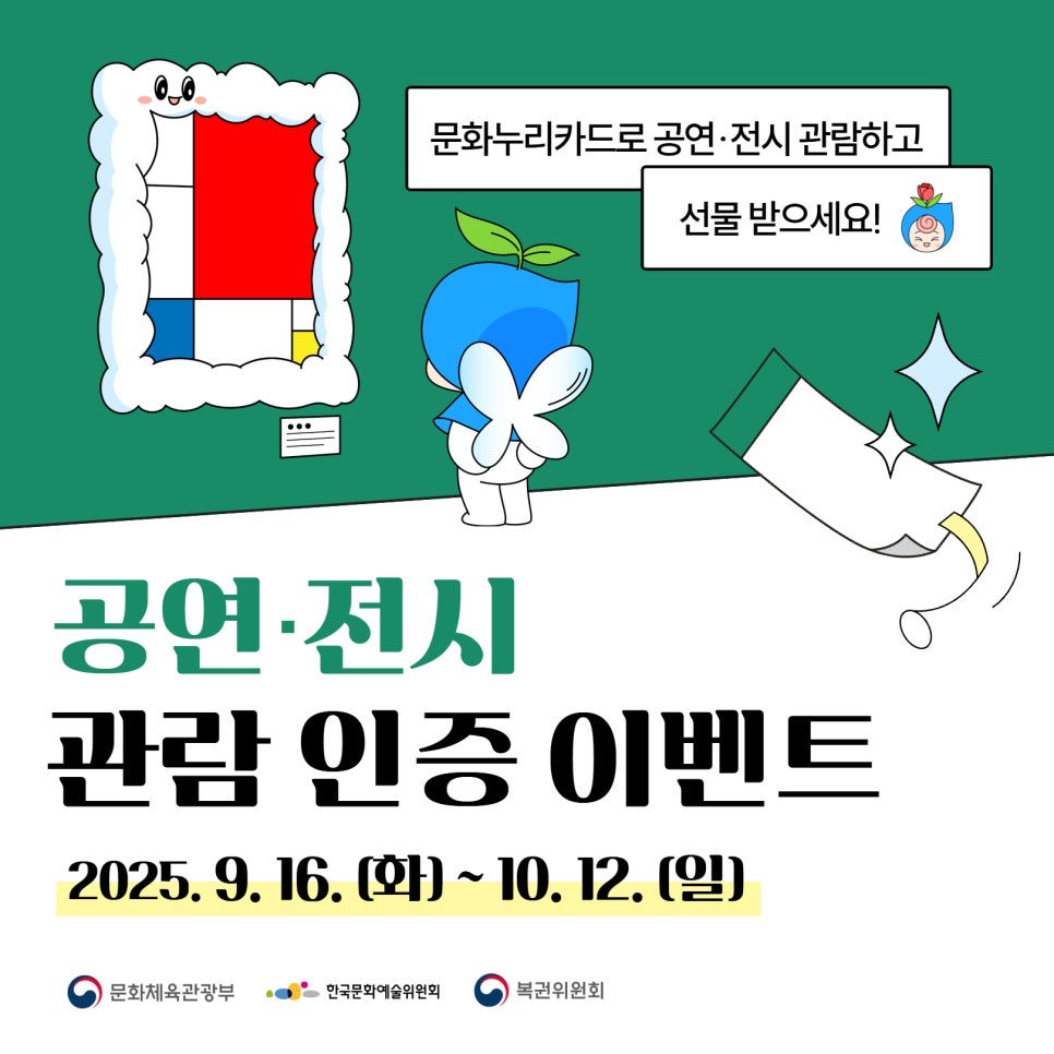 이벤트 기간 동안 문화누리카드로 공연·전시를 관람하셔서 선물 받아가세요!