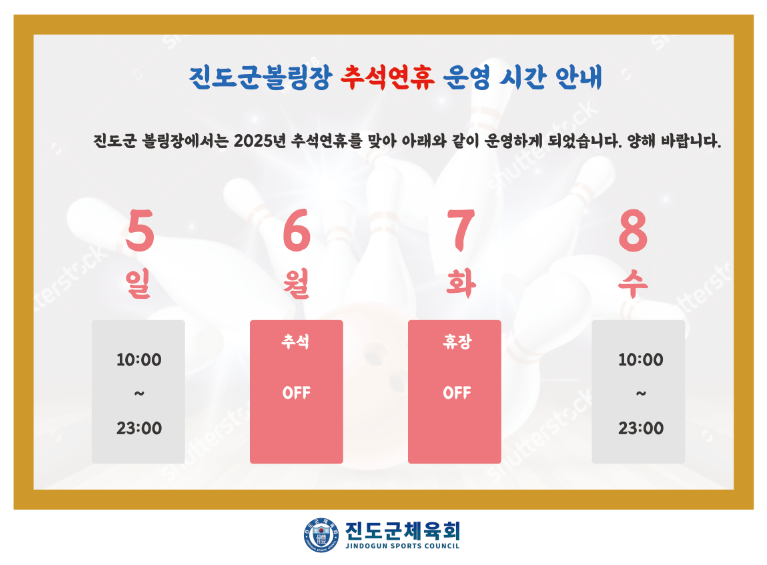 2025년 추석연휴 진도군볼링장 운영 안내