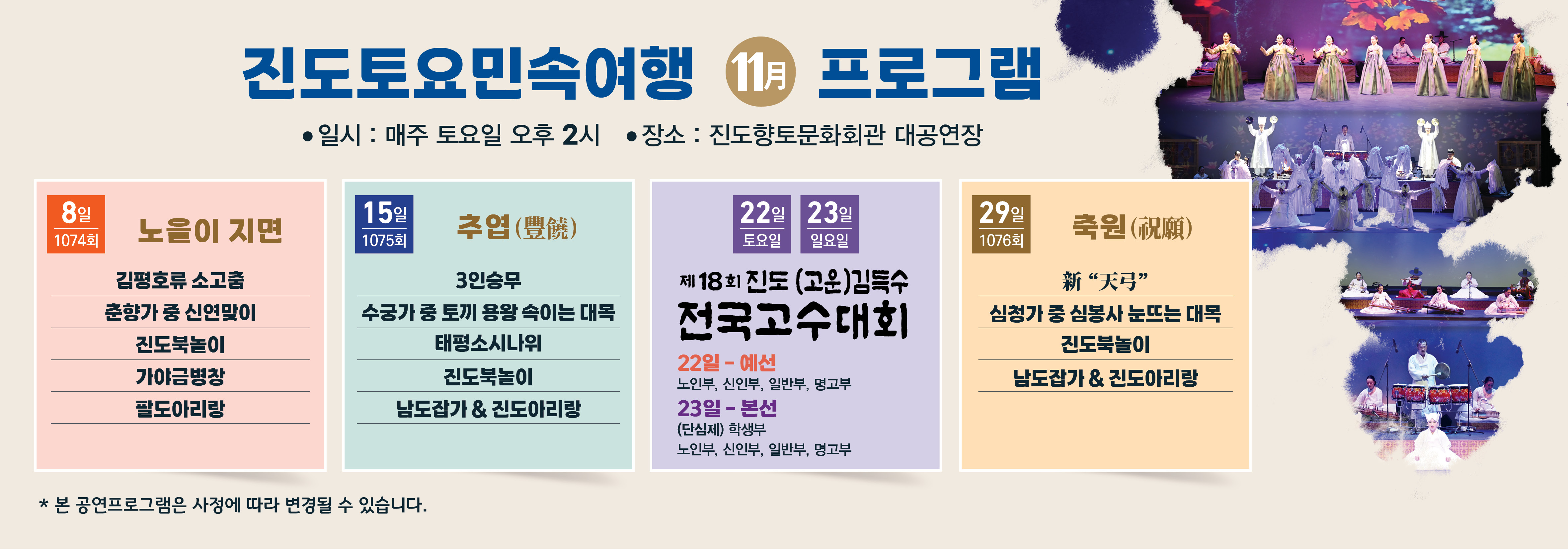 ※ 11월 1일 공연은 2025 진도국제무형문화축전 공연으로 대체됩니다.