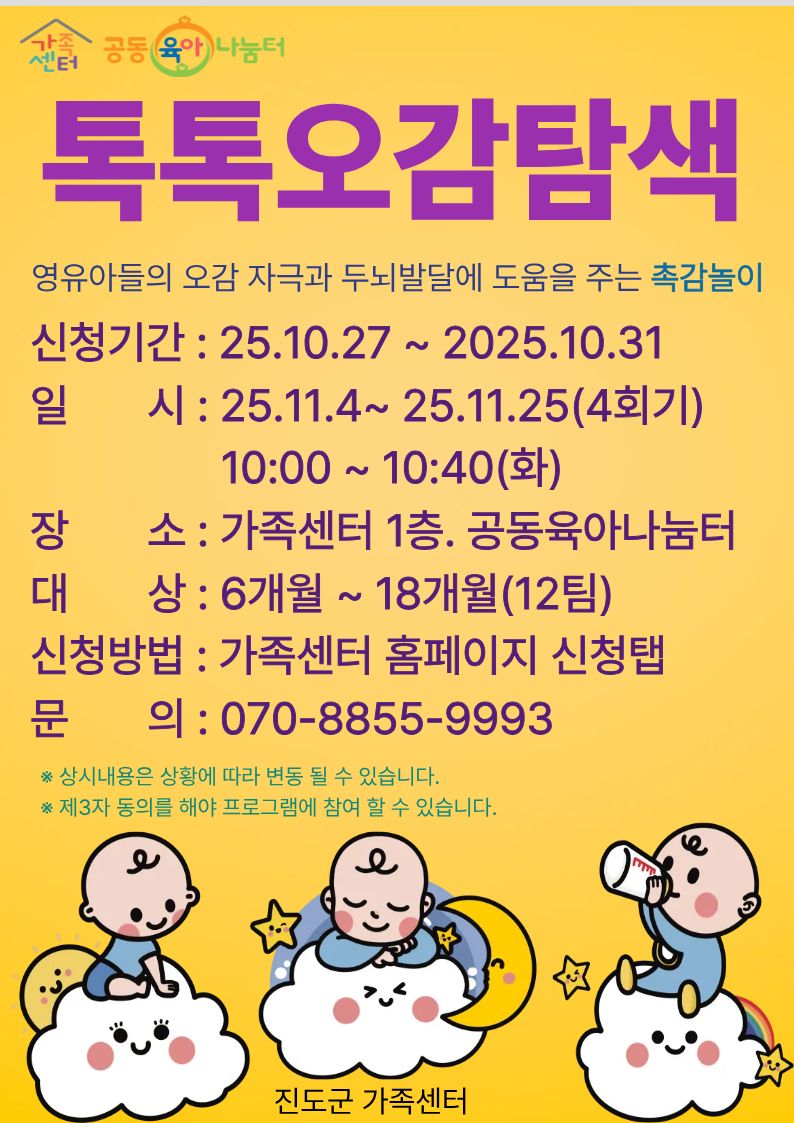 11월 톡톡 오감 탐색(영 유아들의 오감을 자극하고 두뇌 발달과 부모와 애착 형성에 도움이 되는 촉감 놀이)