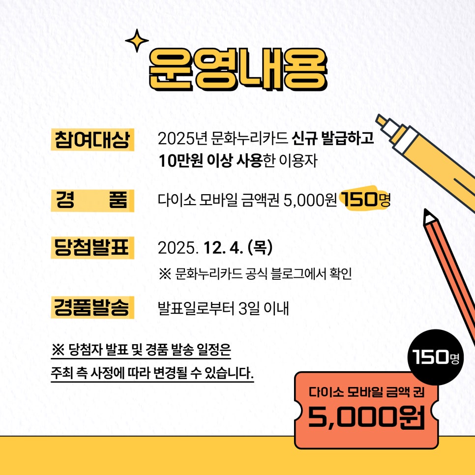 문화누리카드 신규발급자 대상 이용 인증 이벤트 안내드립니다.