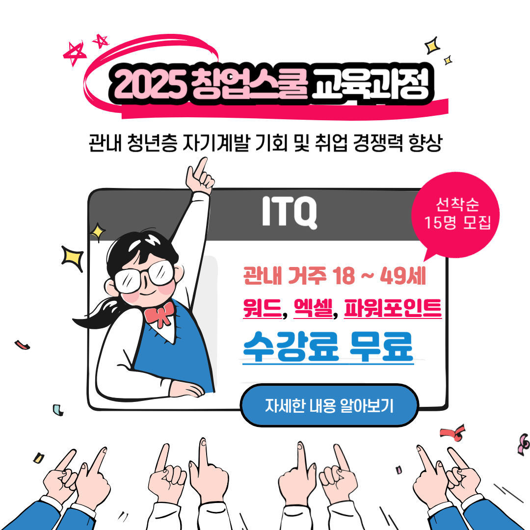 진도군에 거주하는 청년들 대상으로 취 · 창업에 도움이 되는 자격증 교육과정을 통해 관내 청년들의 취업 경쟁력 향상 시키기 위해 "2025 진도군 청년 창업스쿨" 수강생을 모집합니다!