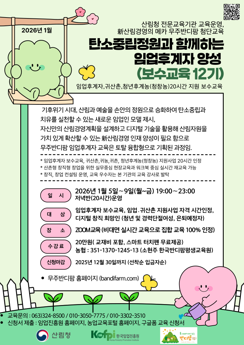 ■ 교육접수 : 임업진흥원 홈페이지, 농업교육포털 홈페이지, 구글폼 교육신청서, 무주반디팜 홈페이지 (www.bandifarm.com)