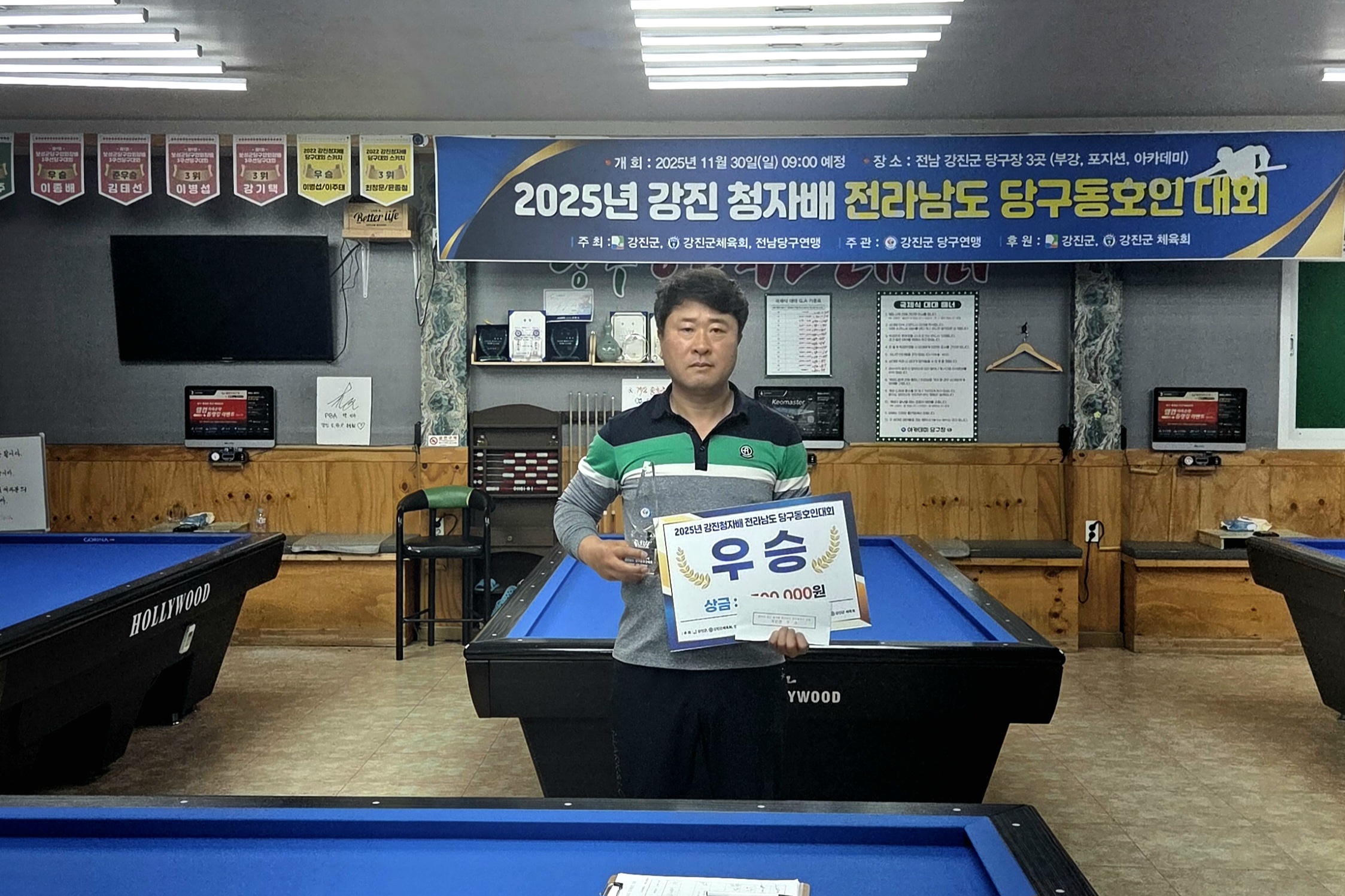 우리군 김행직 선수가 2025 대한체육회장배 전국당구대회에서 준우승했습니다. 아울러 지난해에 이어 김연일 선수가 강진청자배에 우승을 거두었습니다. 많은 축하바랍니다~
