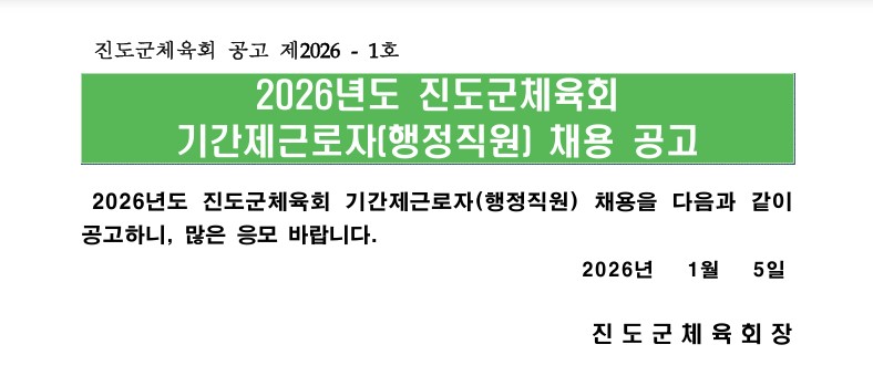 제목 2026년 진도군체육회 기간제근로자(행정직원) 채용 공고