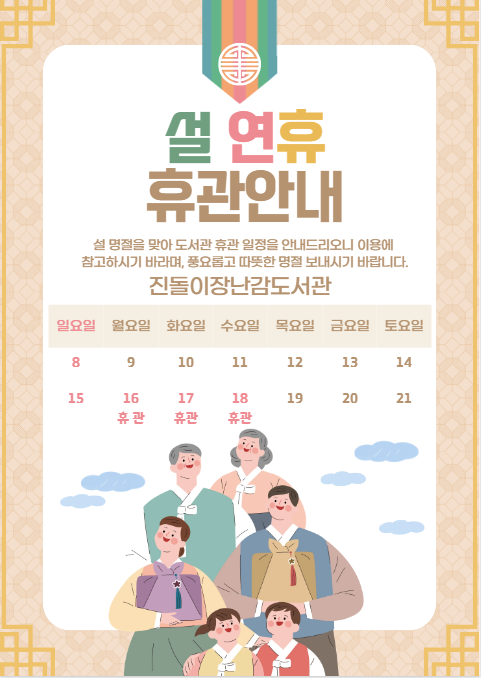 *진돌이장난감도서관 설 연휴 휴관 안내*