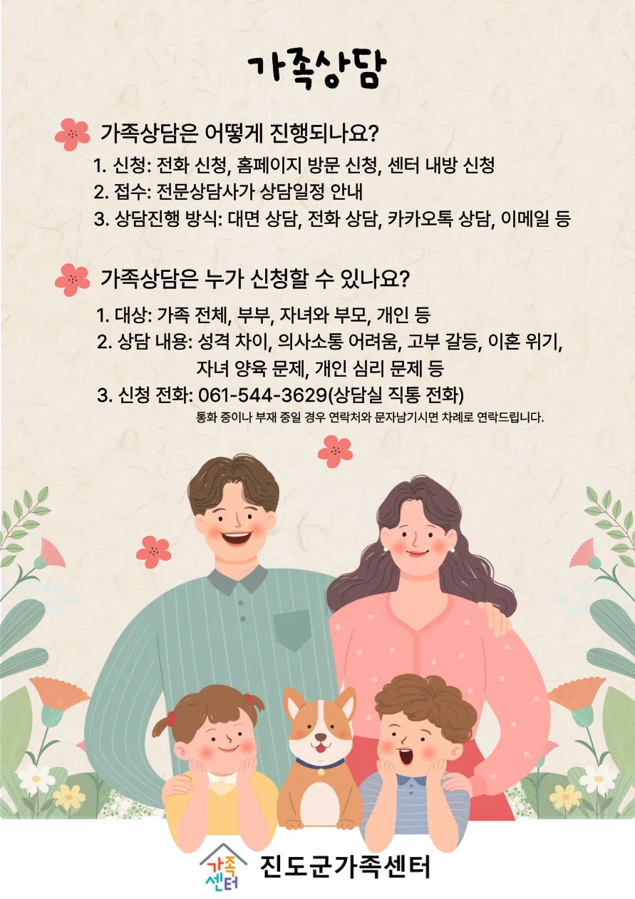 **'상처보다 이해가 먼저인 가족, 침묵보다 대화가 살아있는 가족'으로 가족상담이 여러분과 함께합니다.**