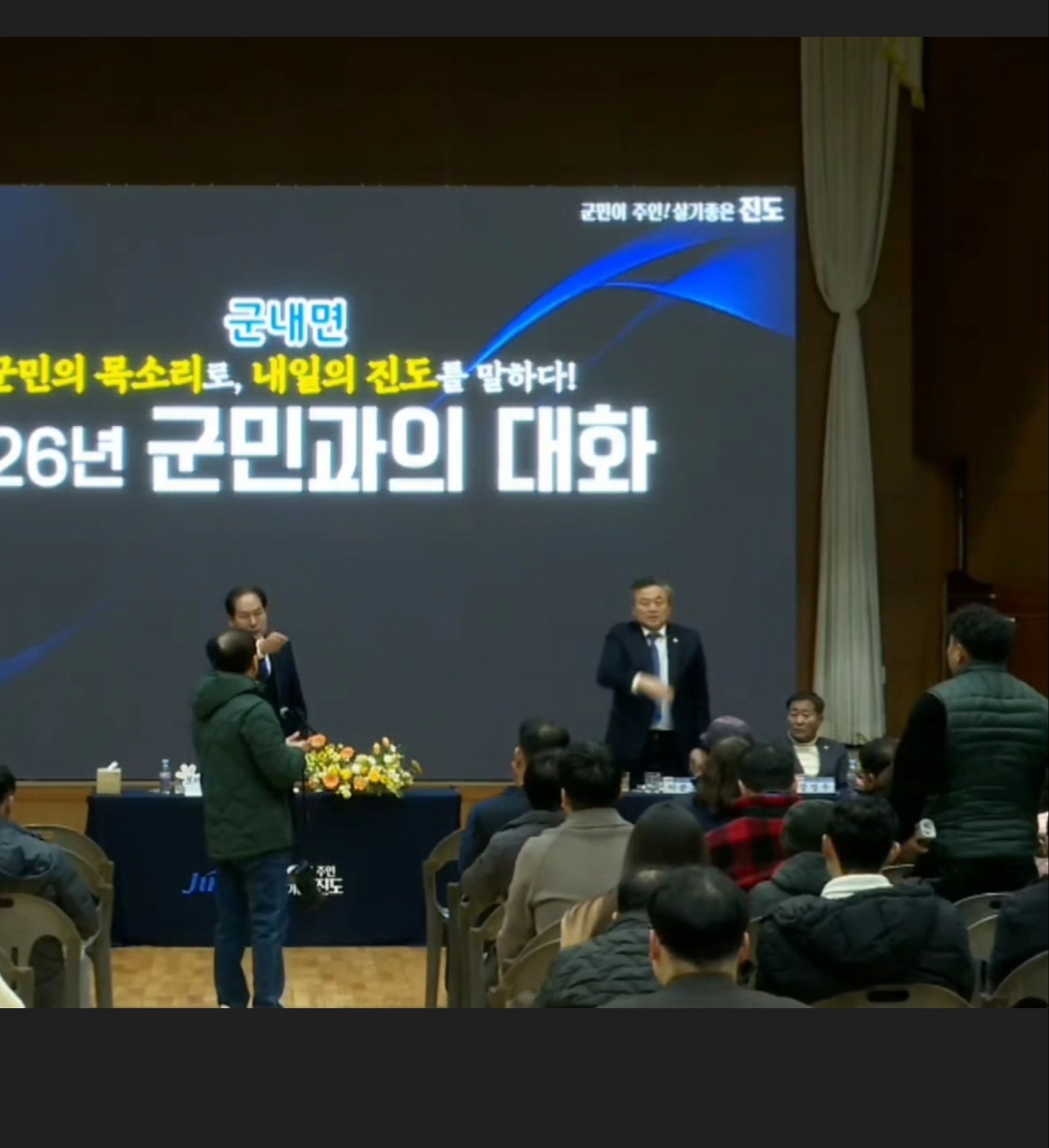 군민의 대화중 군민에게 정말 해서는 안될 쌍욕까지 날리시는 군수님 이제 조용히 내려 오셔야 할거 같은데........