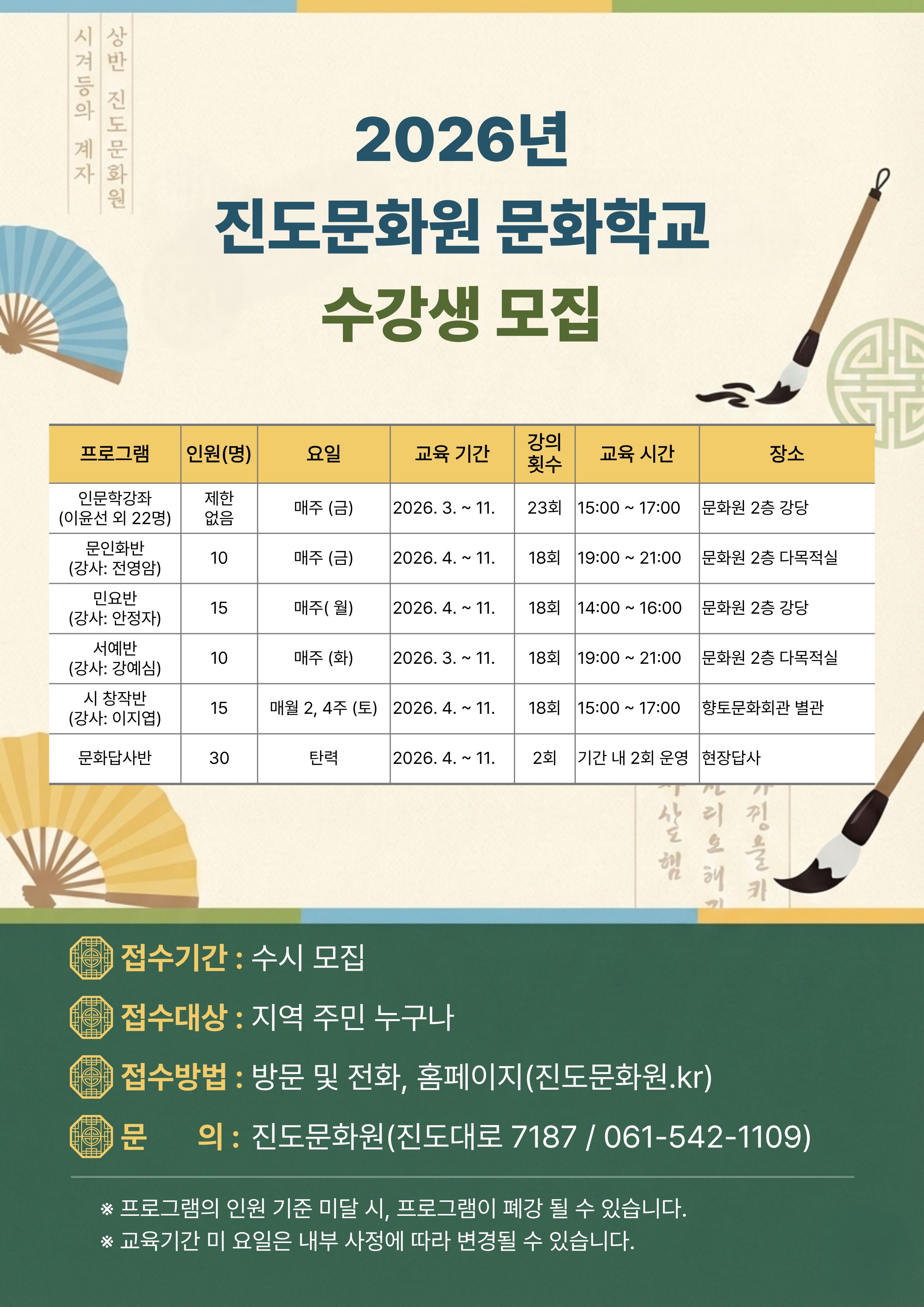 진도문화원 2026 문화학교 수강생 모집