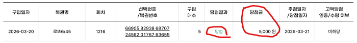 <b>참고로 모바일(온라인)으로 구매하시는 로또는 한 회차에 5천원까지만 구매 가능하니 참고하세요.