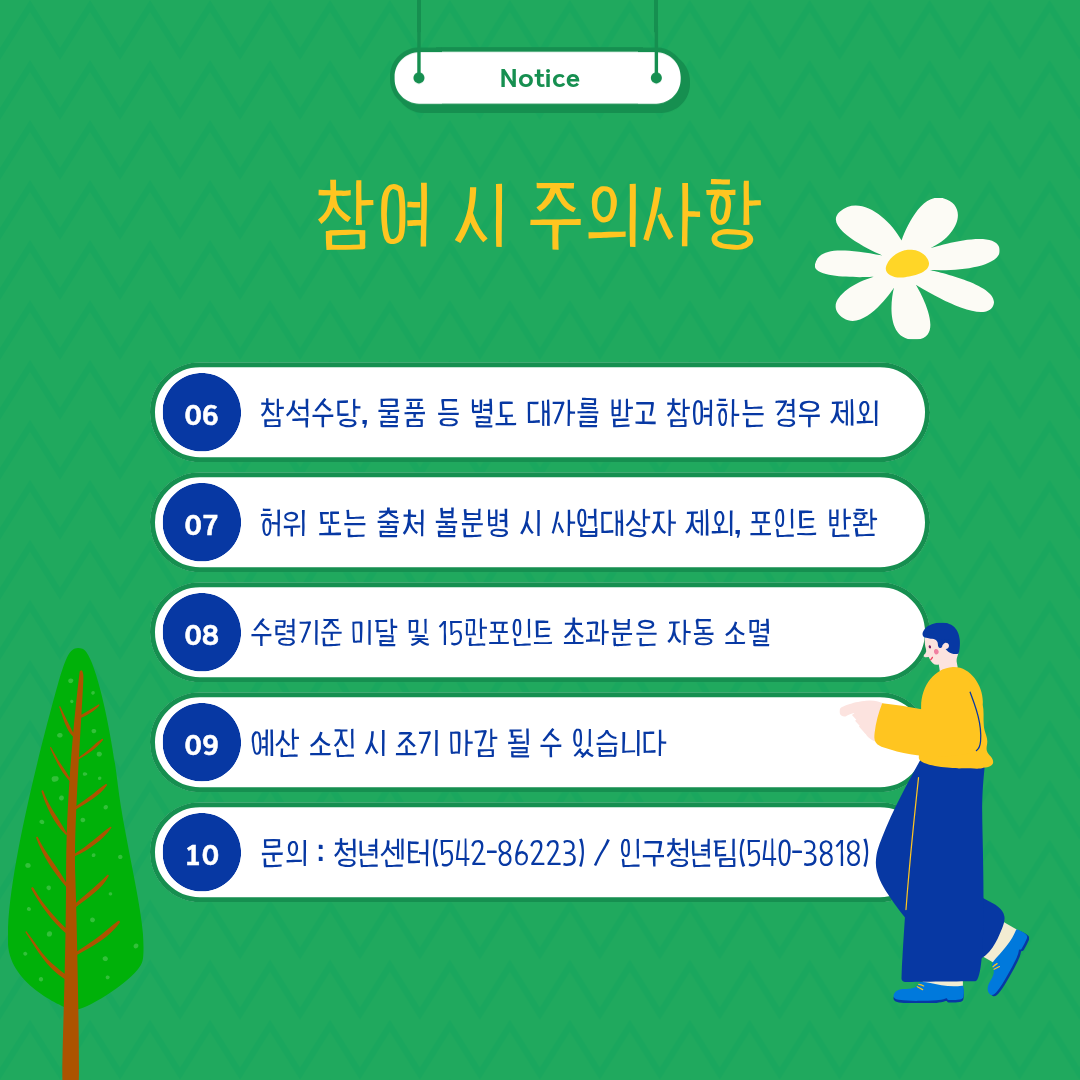 사업내용 : 청년 활동 항목에 따라 포인트 부여, 10000포인트 이상 누적시 진도아리랑상품권 카드 충전 지급