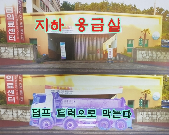 ( 입구가 ㅡ 큰곳은 ㅡ 덤프 트럭으로 막는다 )