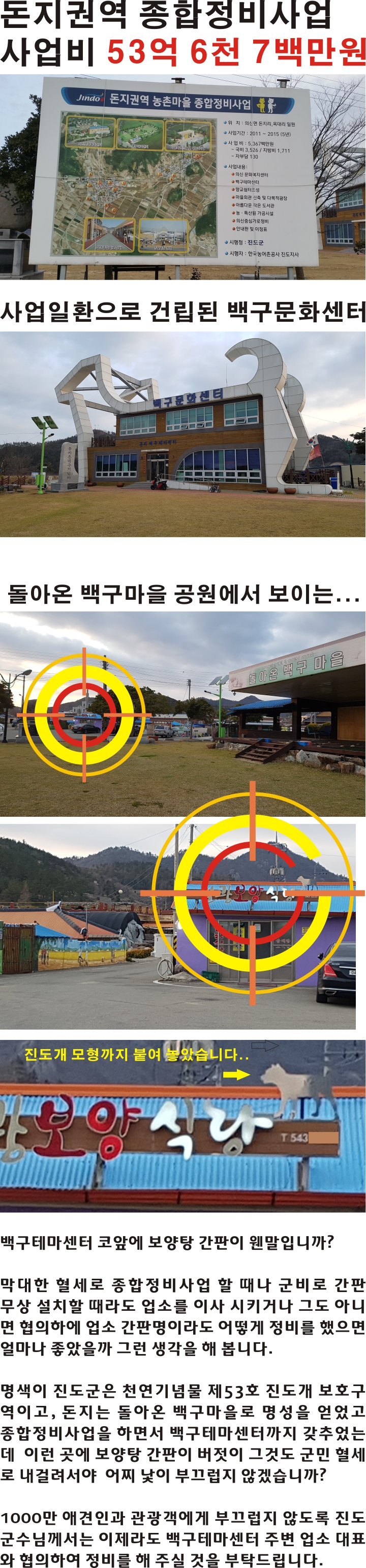진도개 보호구역인 진도군, 백구테마센터 앞에 보양탕 간판은 쫌