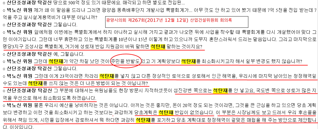 제가 신문에 광양시의회 박노신의원, 백성호 의원 질의와 공무원 답변을 인용해놓았습니다.