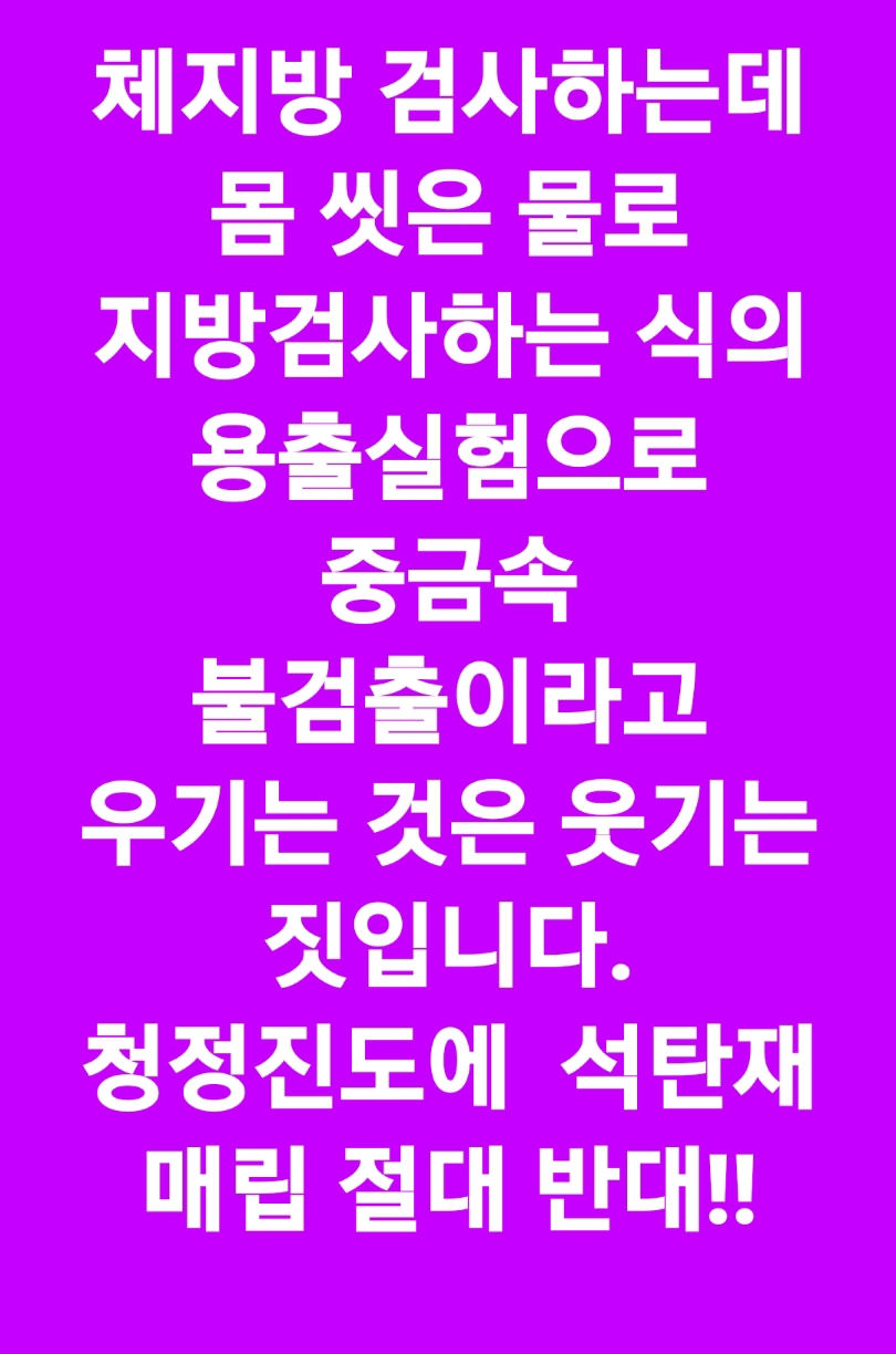 진도군은 엉뚱한 실험 결과로 불검출되어 무해하는 황당한 주장하지 말고,