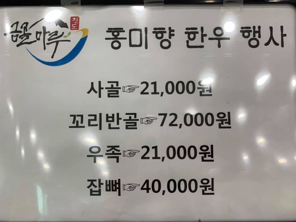 안녕하세요~ 착한가격으로 항상 찾아뵙고자 노력하는 금골산 유통 홍미향 한우입니다~ 고기외에도 싱싱한 농산물, 진도 특산품 등을 판매 중이오니 구경오세요~ 주소: 전남 진도군 군내면 진도대로 7943 061 -543-6655