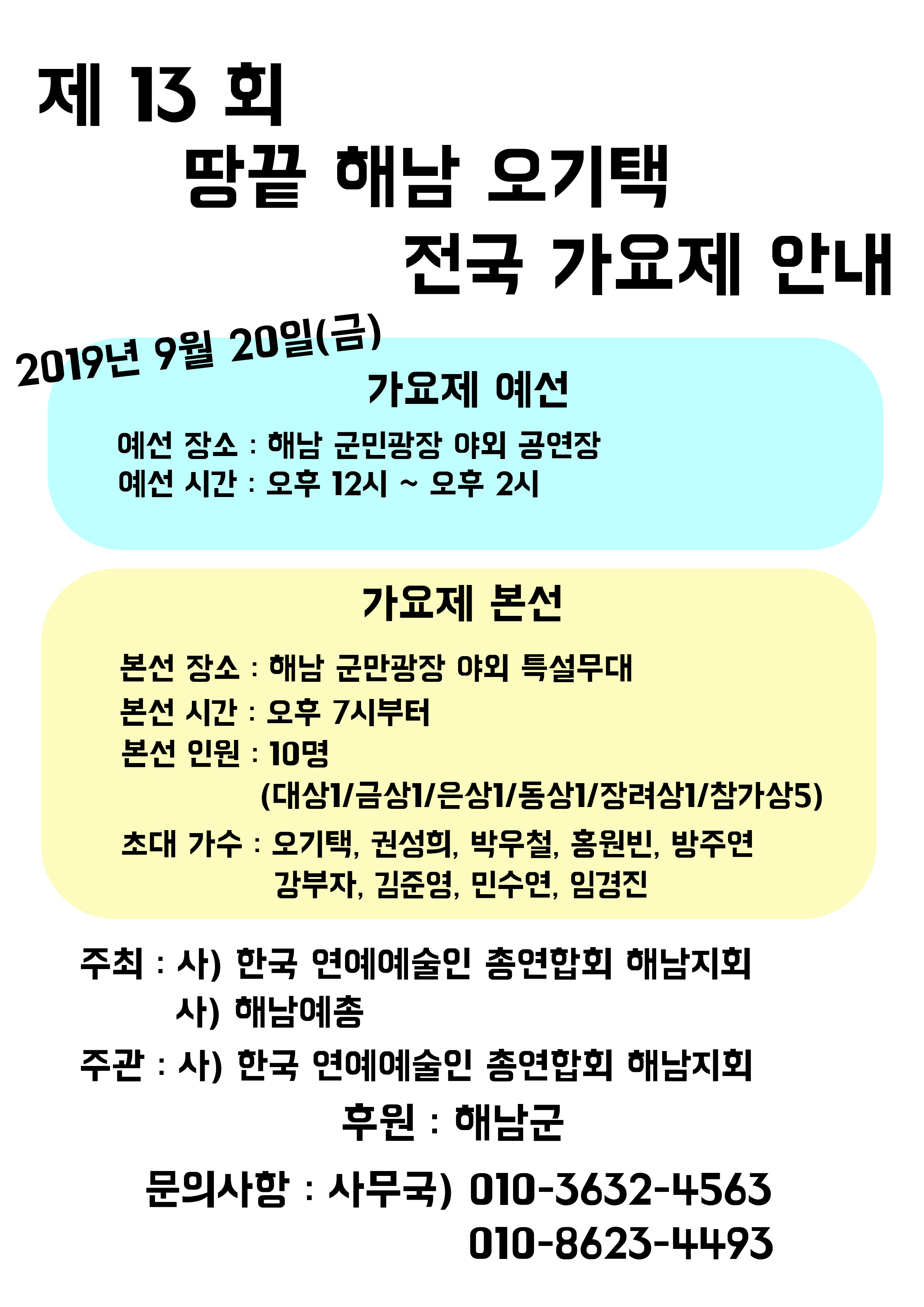 제13회 땅끝해남 오기택 전국가요제 안내