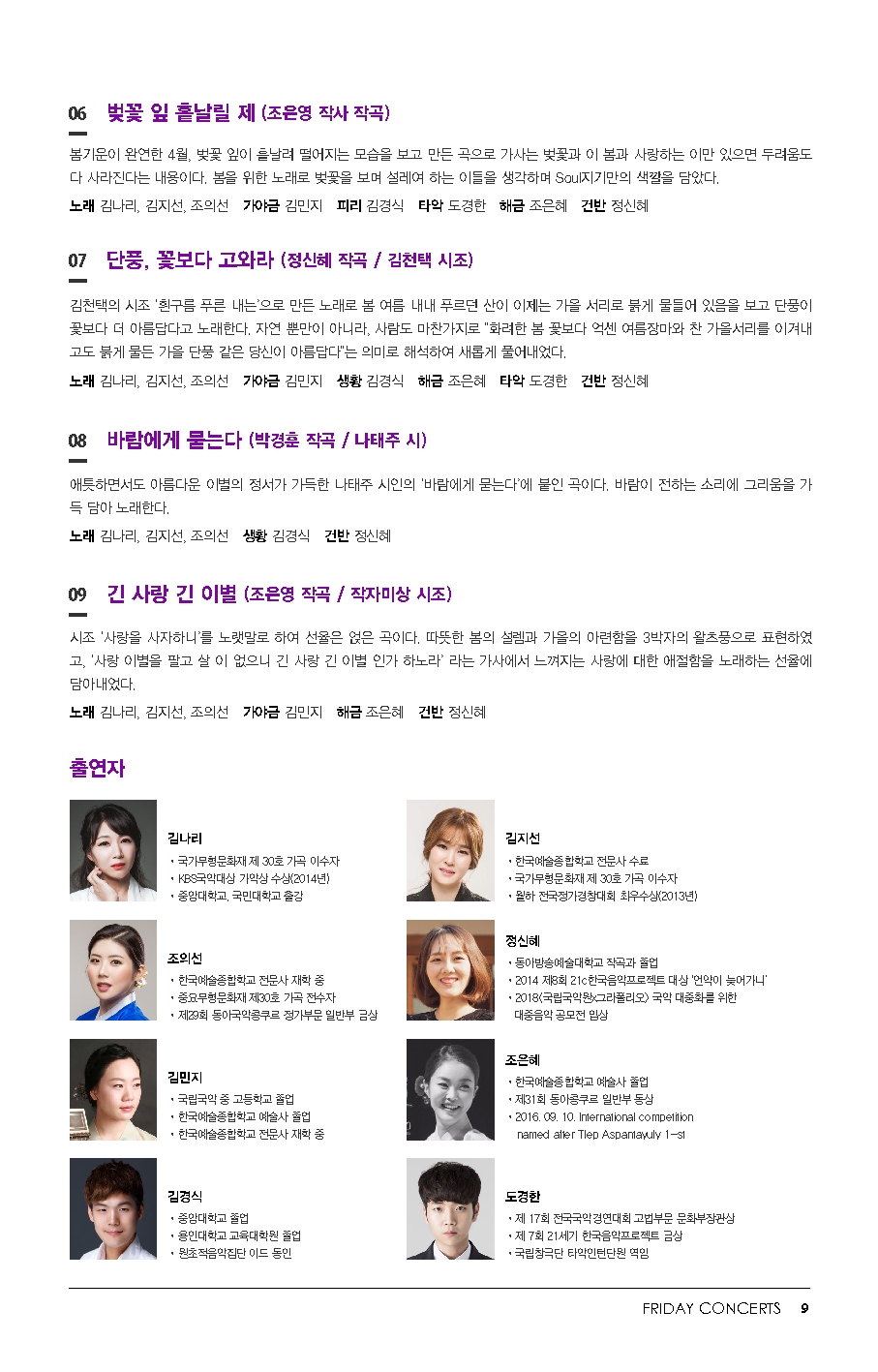 서정적이고 감성적인 공연들로 가을의 정취를 느낄 수 있는 공연들이 준비되어 있으니 많은 관람 부탁드립니다.