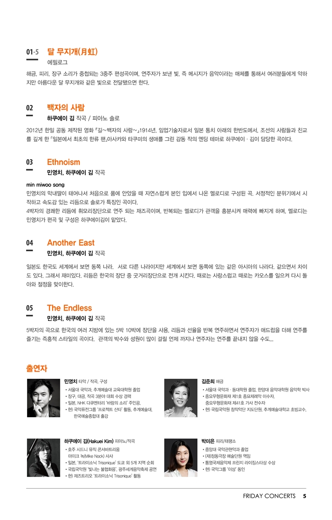 12월 6일 금요국악공감은 국악과 재즈의 만남 "달무지개(月虹)"입니다.