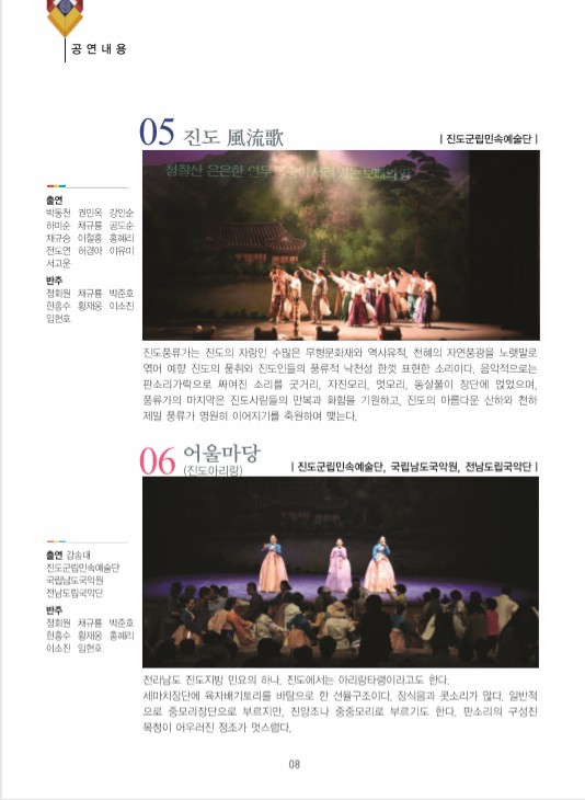 출 연 : 진도군립민속예술단, 국립남도국악원, 전남도립국악단