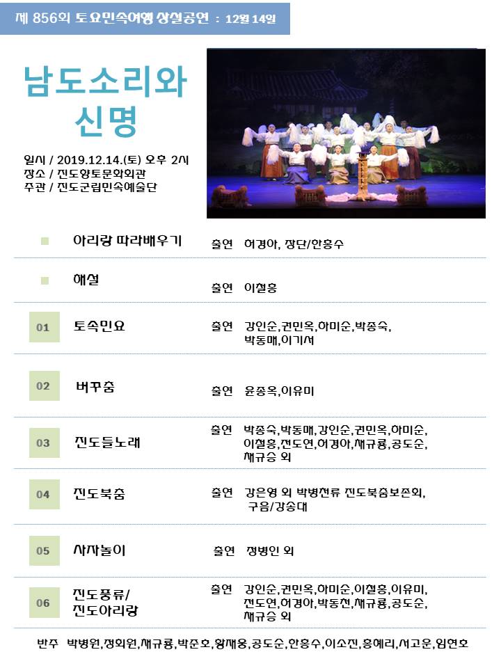 진도 토요민속여행 상설공연 12월 14일 / 남도소리와 신명