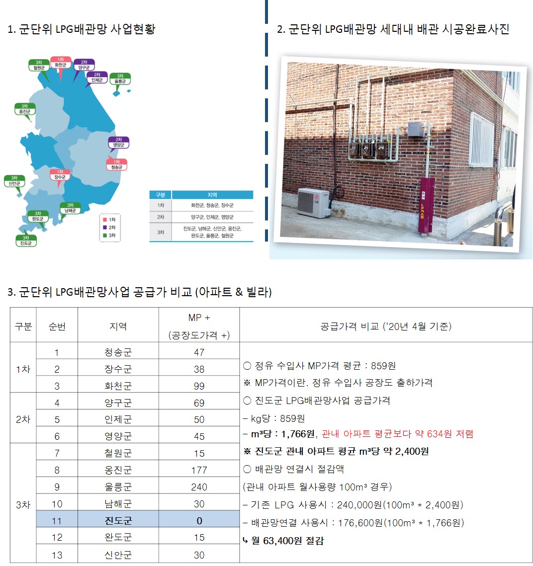 - 진도군 LPG배관망사업 공급가는 「MP + 0원」으로 군단위 사업지 중 가장 저렴