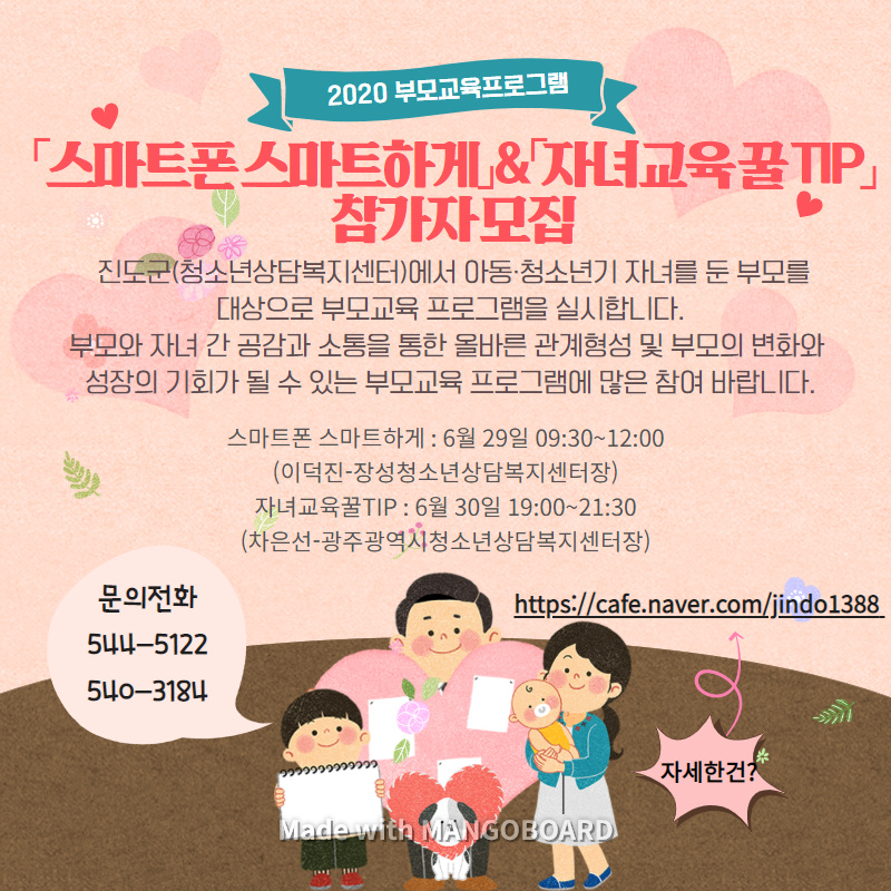 스마트폰 스마트하게 & 자녀교육 꿀TIP 참가자 모집합니다 [진도군청소년상담복지센터]