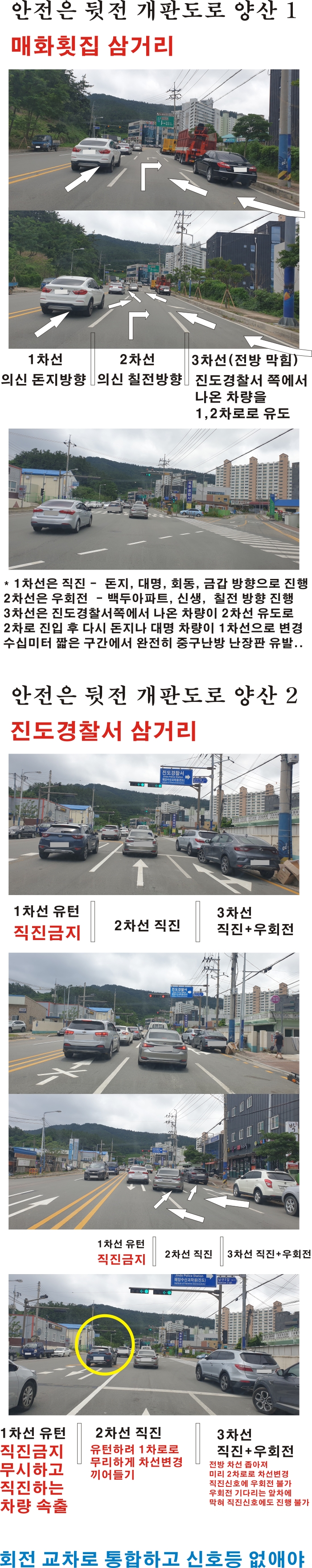 진도군은 최근 노면에 유턴 표시를 새로 추가했습니다. 이로인해 불편은 가중되고 사고 위험은 더욱 커졌습니다.