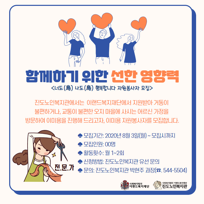 이미용 자원봉사자를 모집합니다.