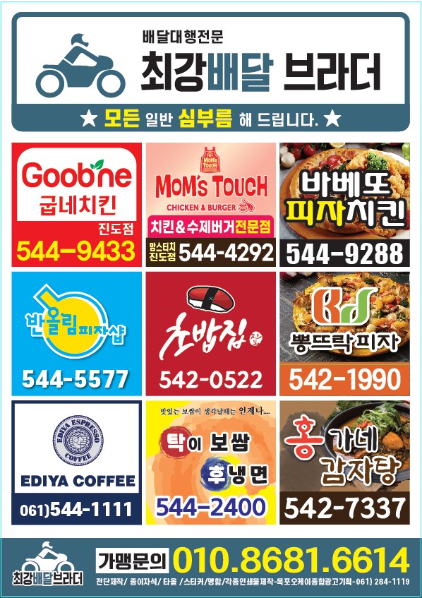최강배달 브라더 전단지배포는 금요일저녁할예정이오니 양해부탁드리겠습니다! 항상 최선을 다하겠습니다!