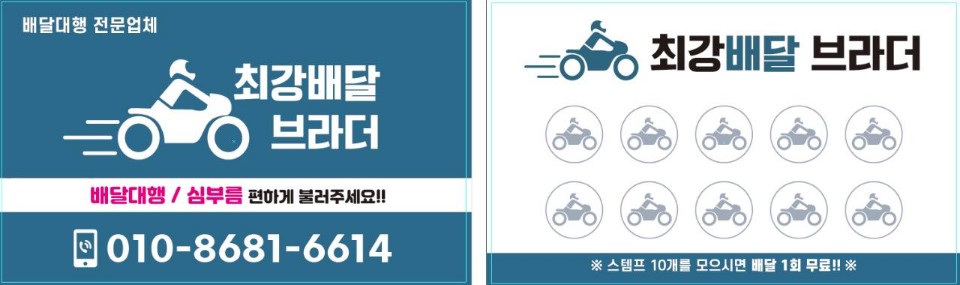 9월11일부터 최강배달 브라더 가맹점 주문시 쿠폰을 드리며 10회 이용시 진도 전지역 어디든 1회 배달료 무료입니다! 코로나19로 인하여 가맹점사장님들과 고객님들에게 저희 최강배달 브라더 전직원이 생각하여 만든 쿠폰제 도입입니다! 항상 최선을 다하는 최강배달 브라더가 되겠습니다!