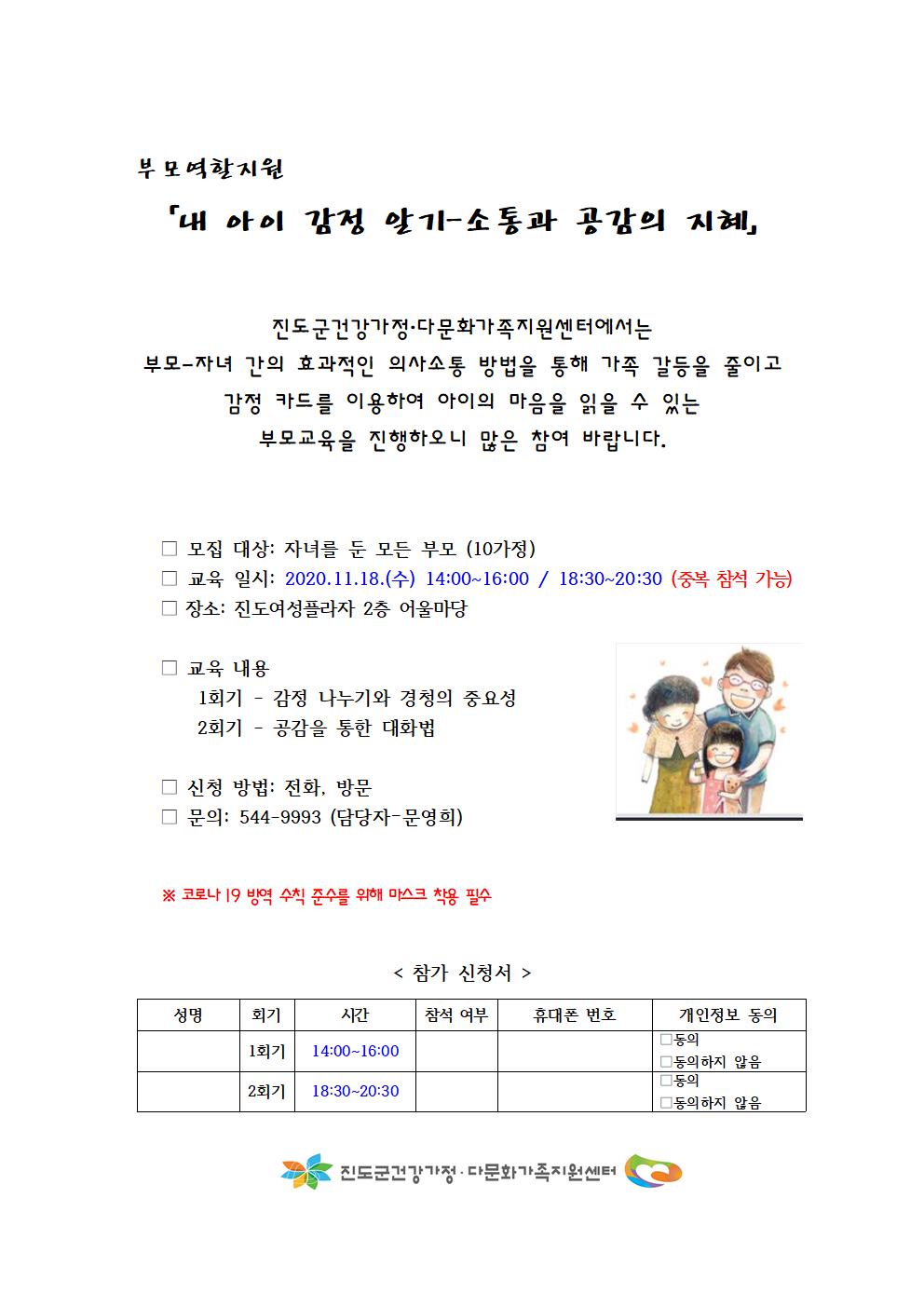 내 아이 마음 알기 부모교육 참여자 모집