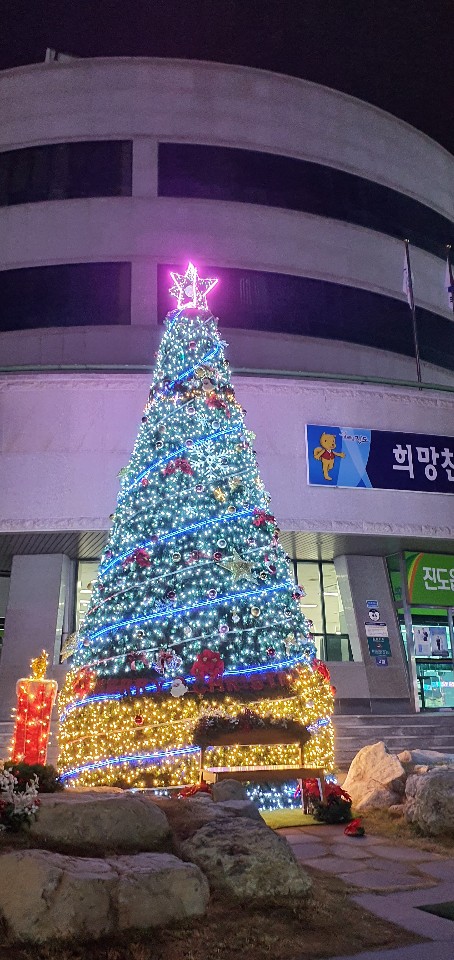 진도읍사무소 앞에 아름답고 밝은 대형 크리스마스트리 가 설치되어 있네요.