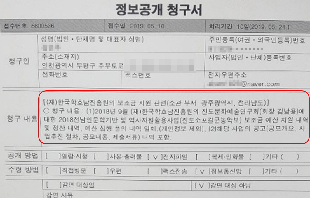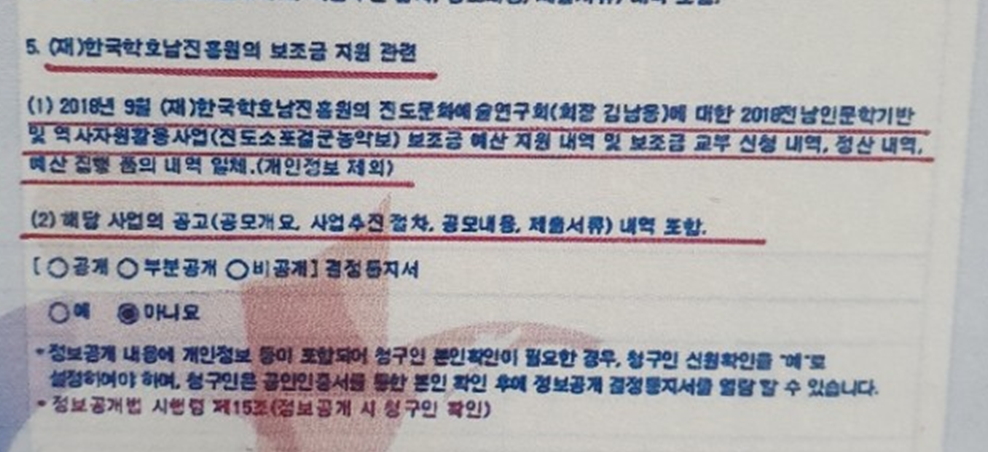 우선 이곳에서 진행되었던 문화 프로그램과 제가 운영하던 단체에서 진행했던 사업 전반에 걸쳐 정보공개청구가 들어왔습니다. 서울, 광주, 목포에 있는 각 기관의 사업 담당자에게서 계속 연락이 왔습니다. 정보공개법에서는 청구자가 신청한 정보 공개 범위에 대해 피청구자에게 동의를 얻는 절차가 있습니다.