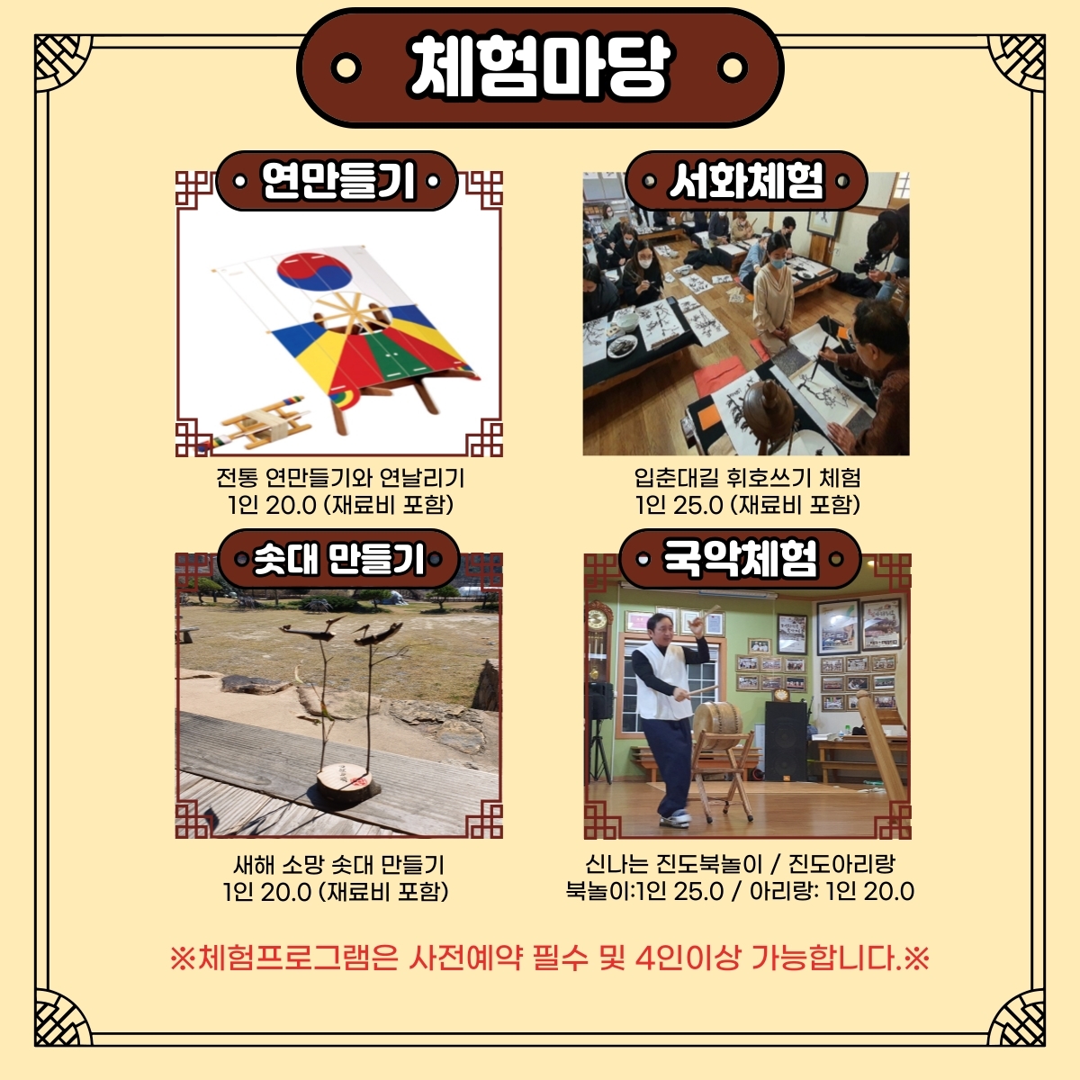 복놀이: 1인 25.0/아리랑: 1인 20.0