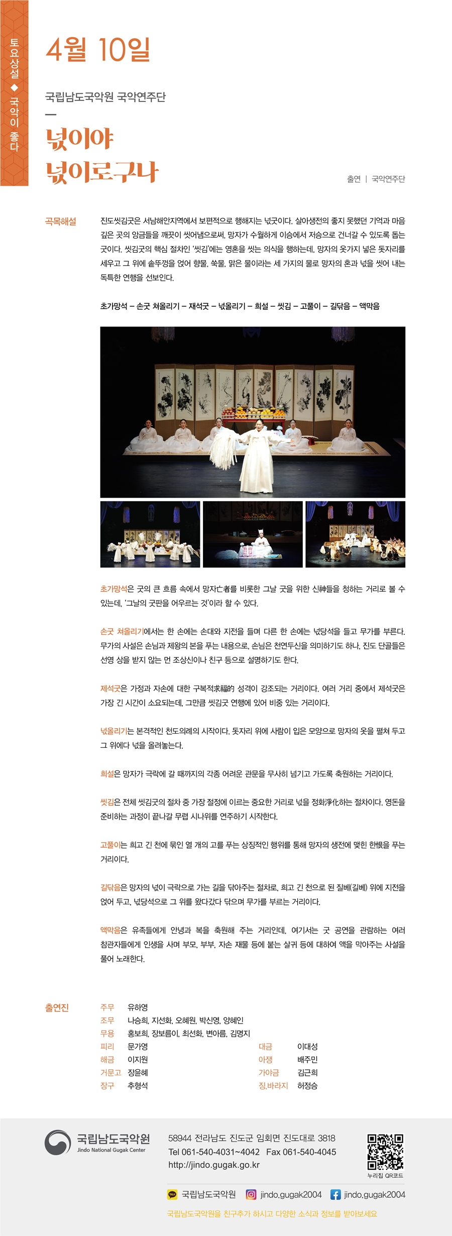 제목 [국립남도국악원] 토요상설 “국악이 좋다!” 『국립남도국악원 국악연주단 “넋이야 넋이로구나”』
