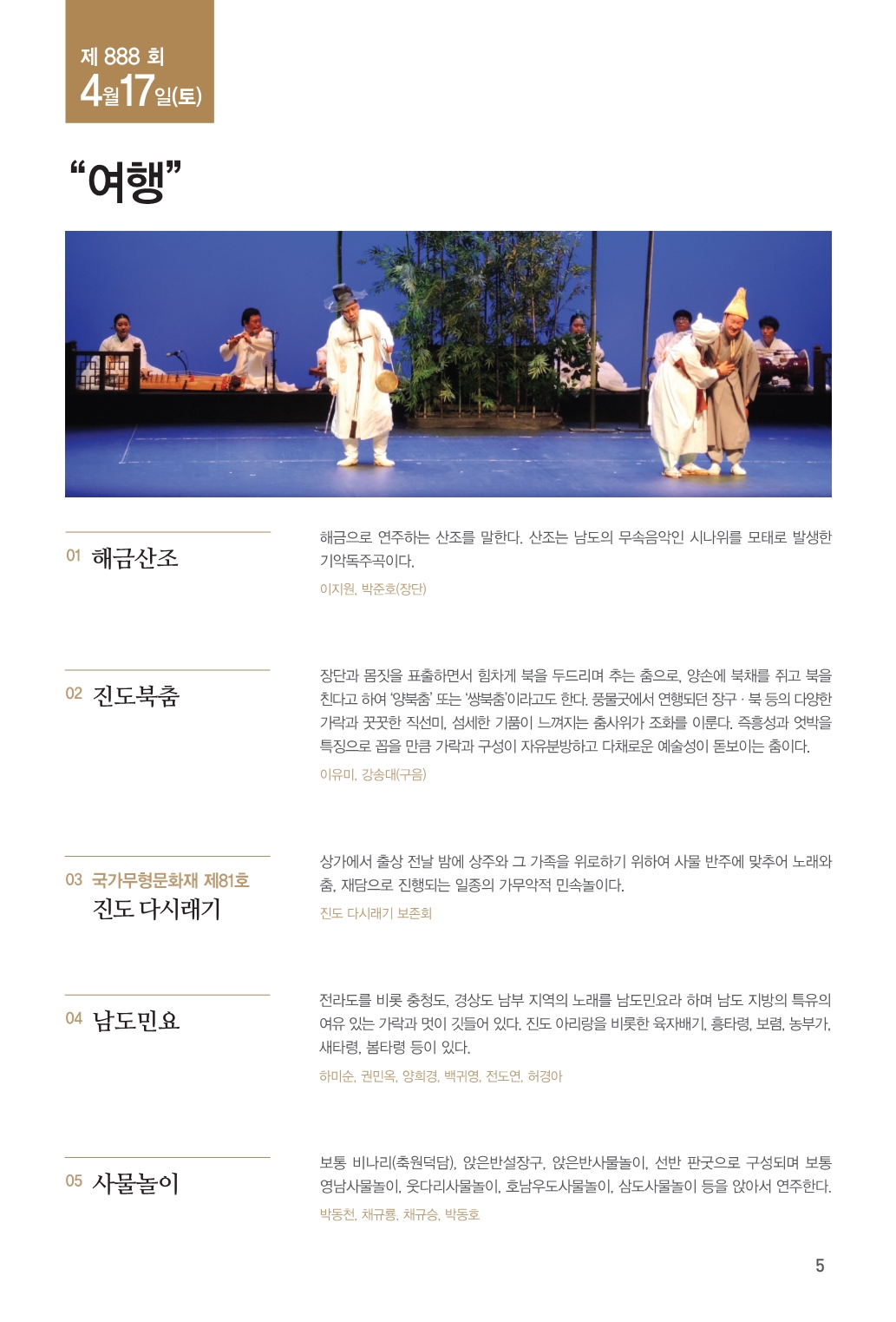 제887회 진도토요민속여행 상설공연이 펼쳐집니다.