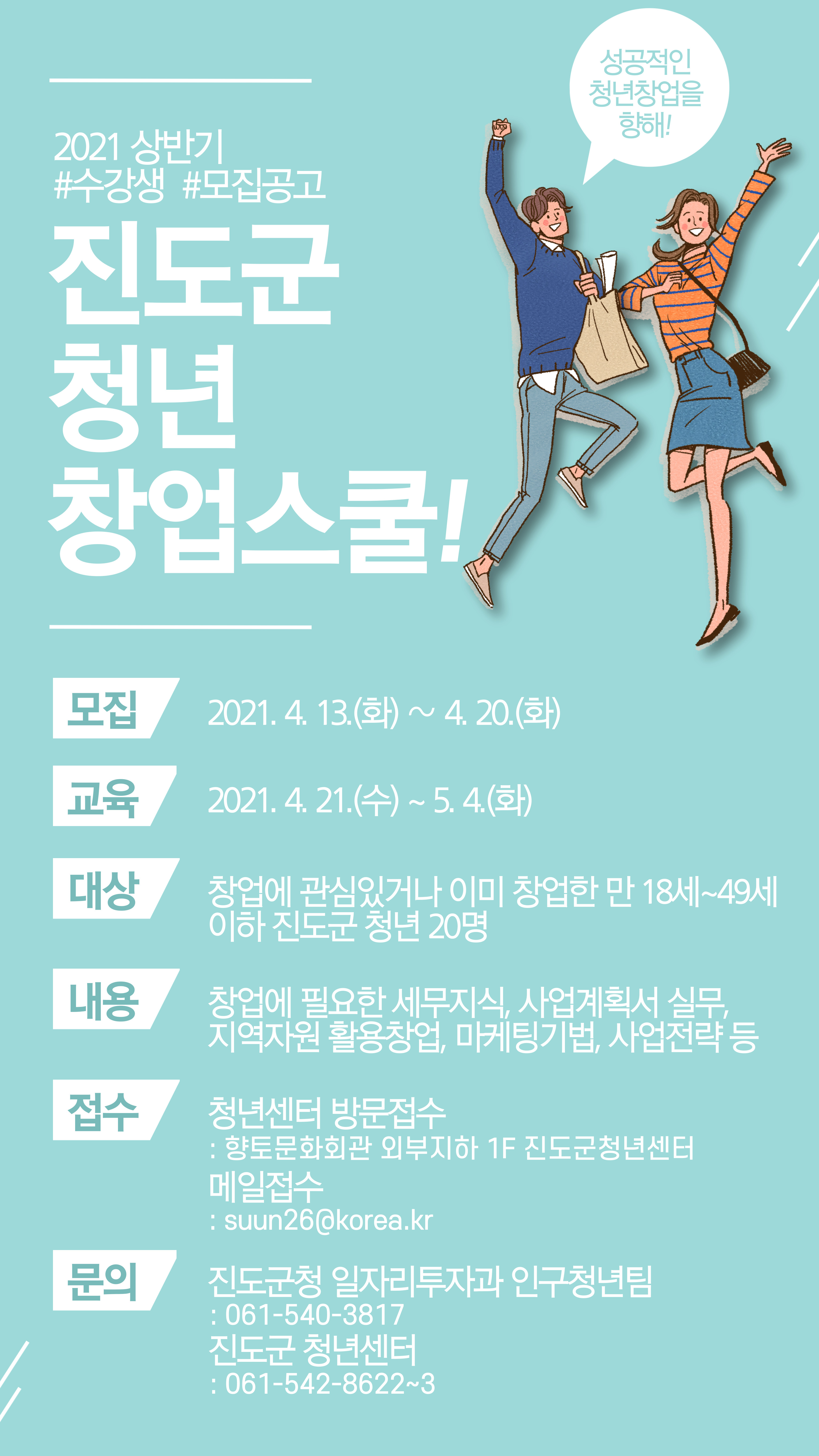 (진도군청 일자리투자과 인구청년팀)진도군 청년 창업 스쿨(상반기) 수강생 모집 공고