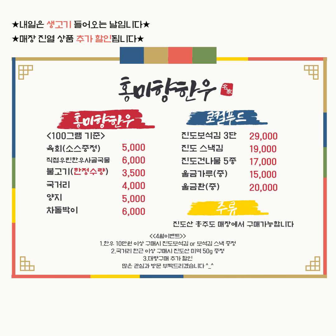 ★오늘도 맛있는 1++ 홍미향 한우 세일 안내/내일 생고기들어옵니다★
