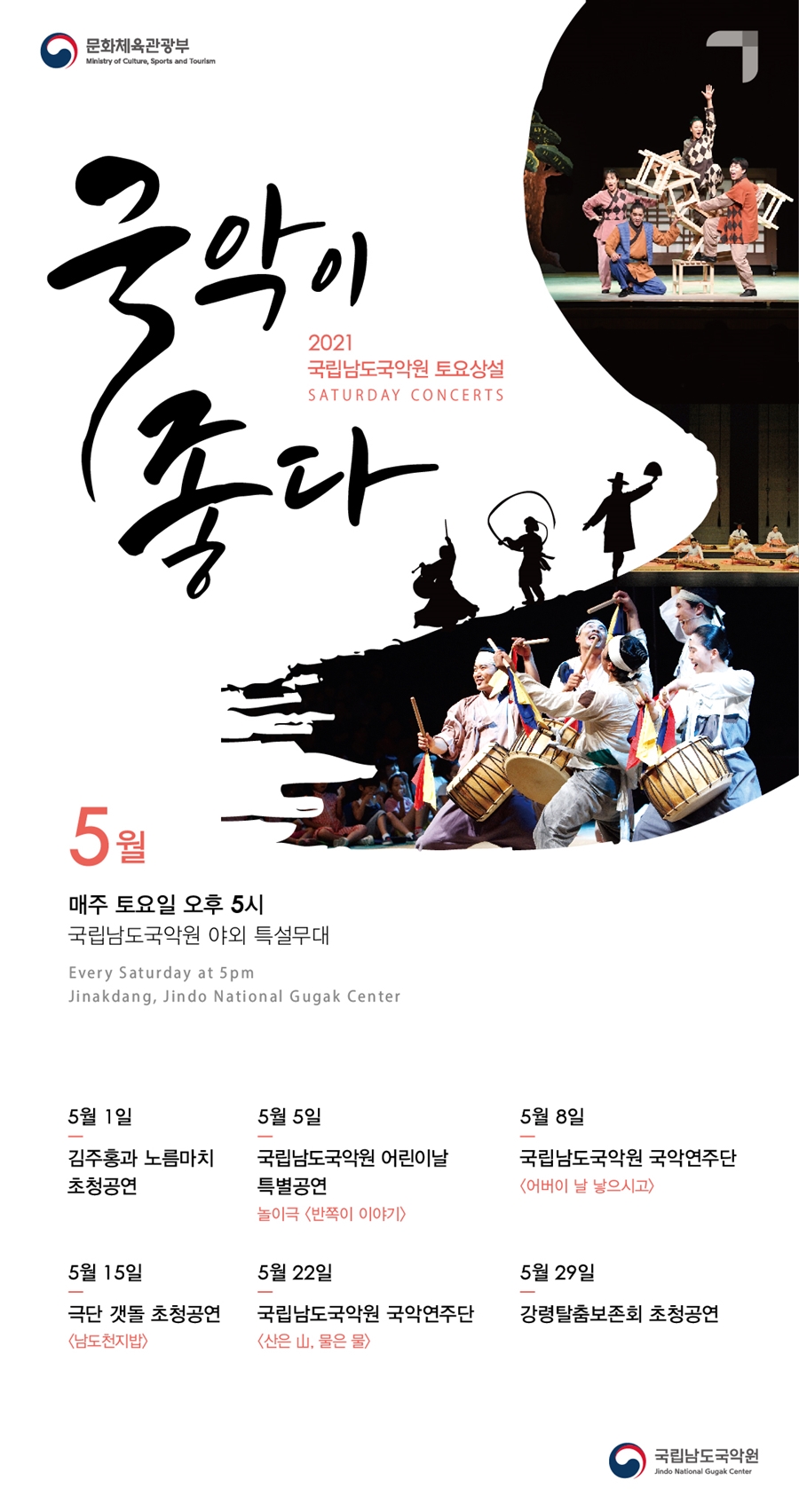 ▪ 토요상설 ‘국악이 좋다!’: 2021. 5. 1.(토) ~ 5. 29.(토), 매주 토요일 17:00