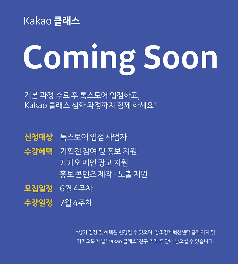기본과정 수료후 톡스토어 입점 신청시 선착순 선심사