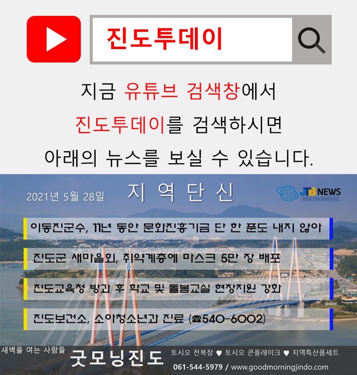 ☞뉴스 영상은 JTB NEWS 홈페이지(www.jindotoday.com) 유튜브를 통해서 확인가능합니다.
