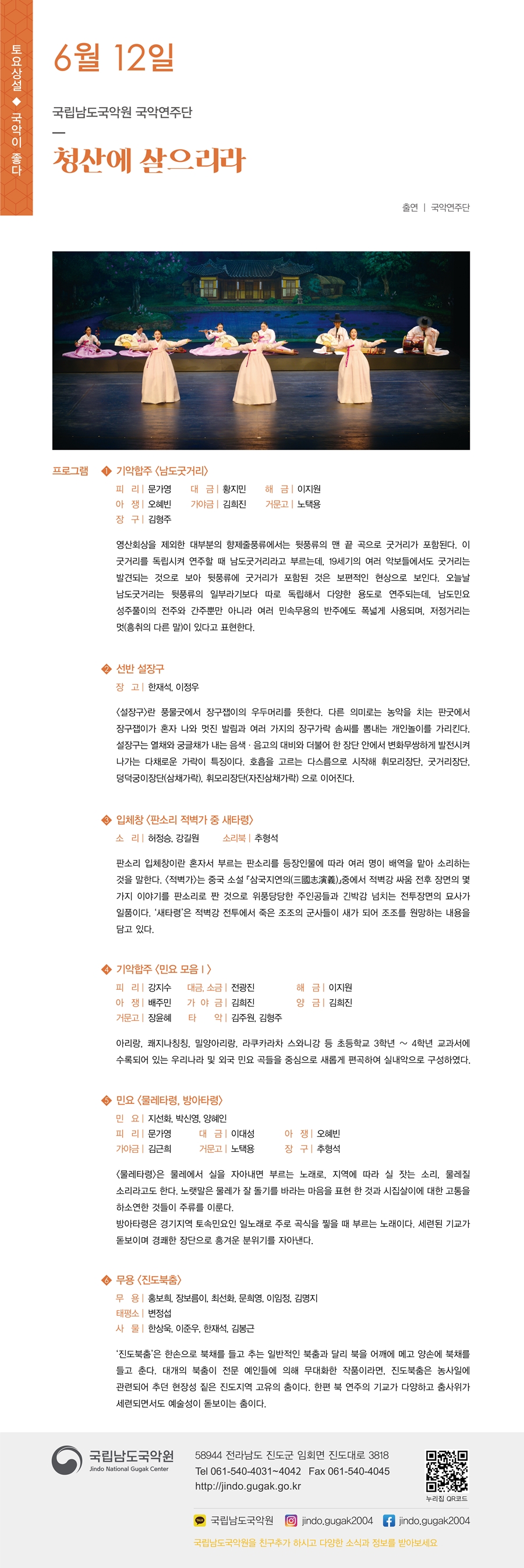 국립남도국악원 국악연주단 “청산에 살으리라”