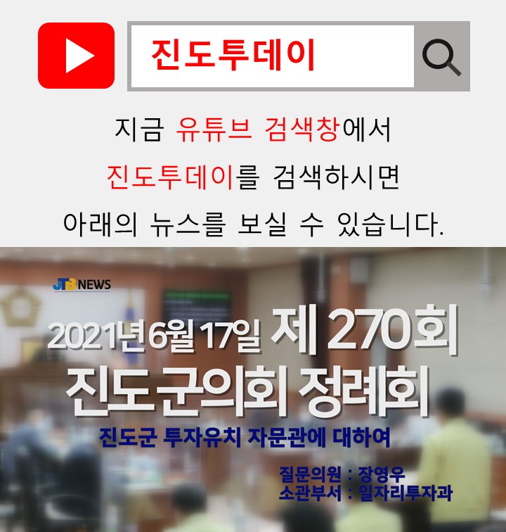 ☞뉴스 영상은 JTB NEWS 홈페이지(www.jindotoday.com) 유튜브를 통해서 확인가능합니다.