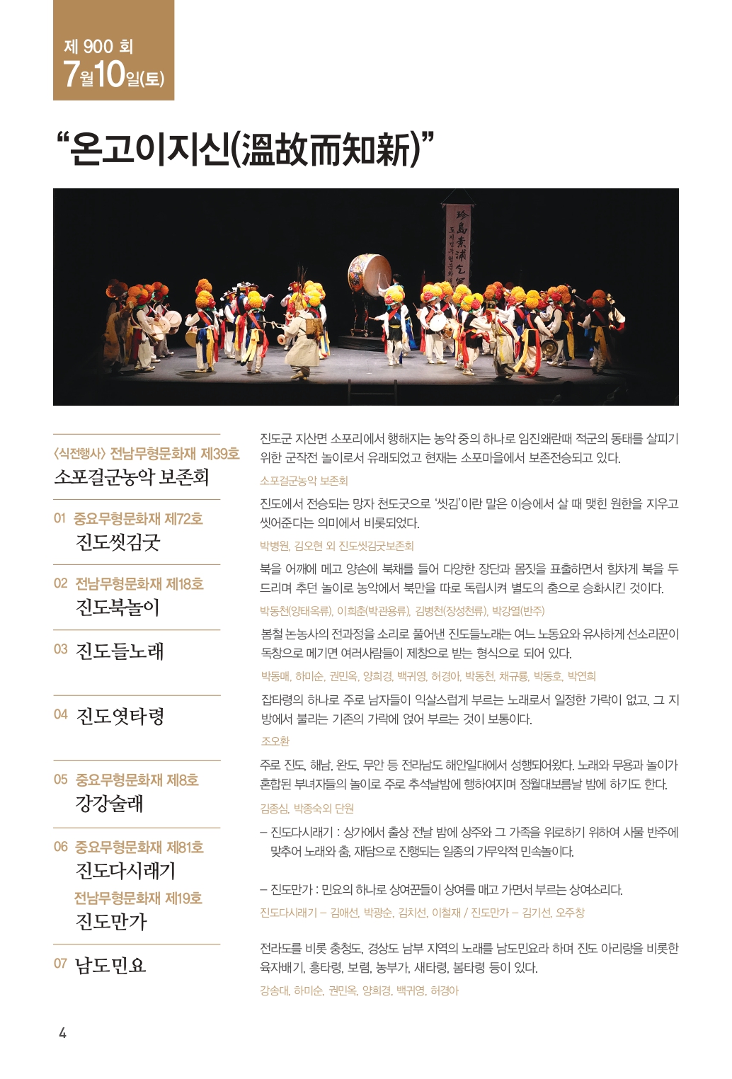 더불어, 다음주 7월 10일에는 제900회 진도토요민속여행 특별공연이 펼쳐지니