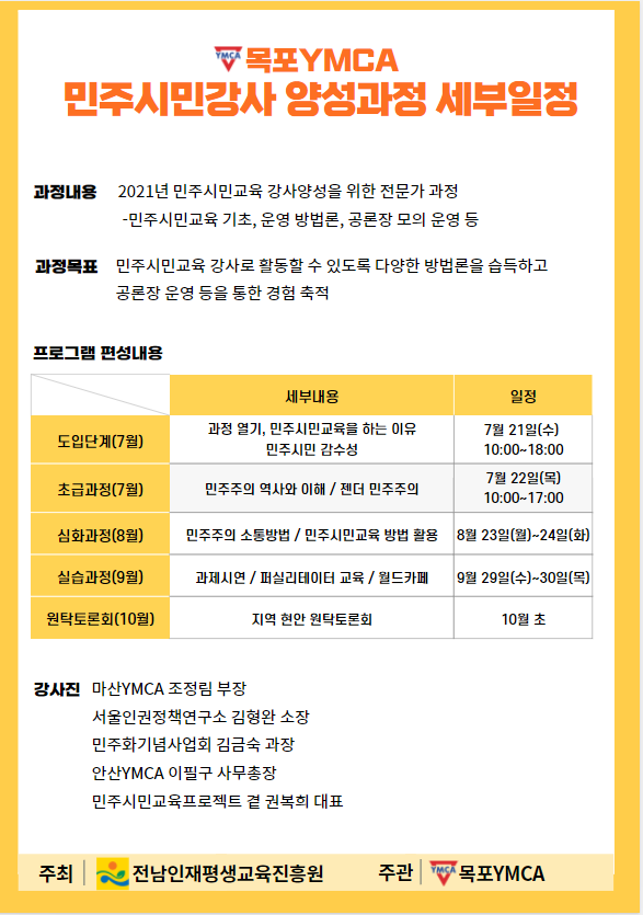 주관: 목포 YMCA / 주최: 전남인재평생교육진흥원