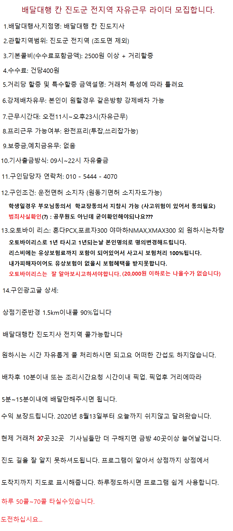 <<<<< 배 달 대 행 칸 >>>>> 라이더님 모집합니다.