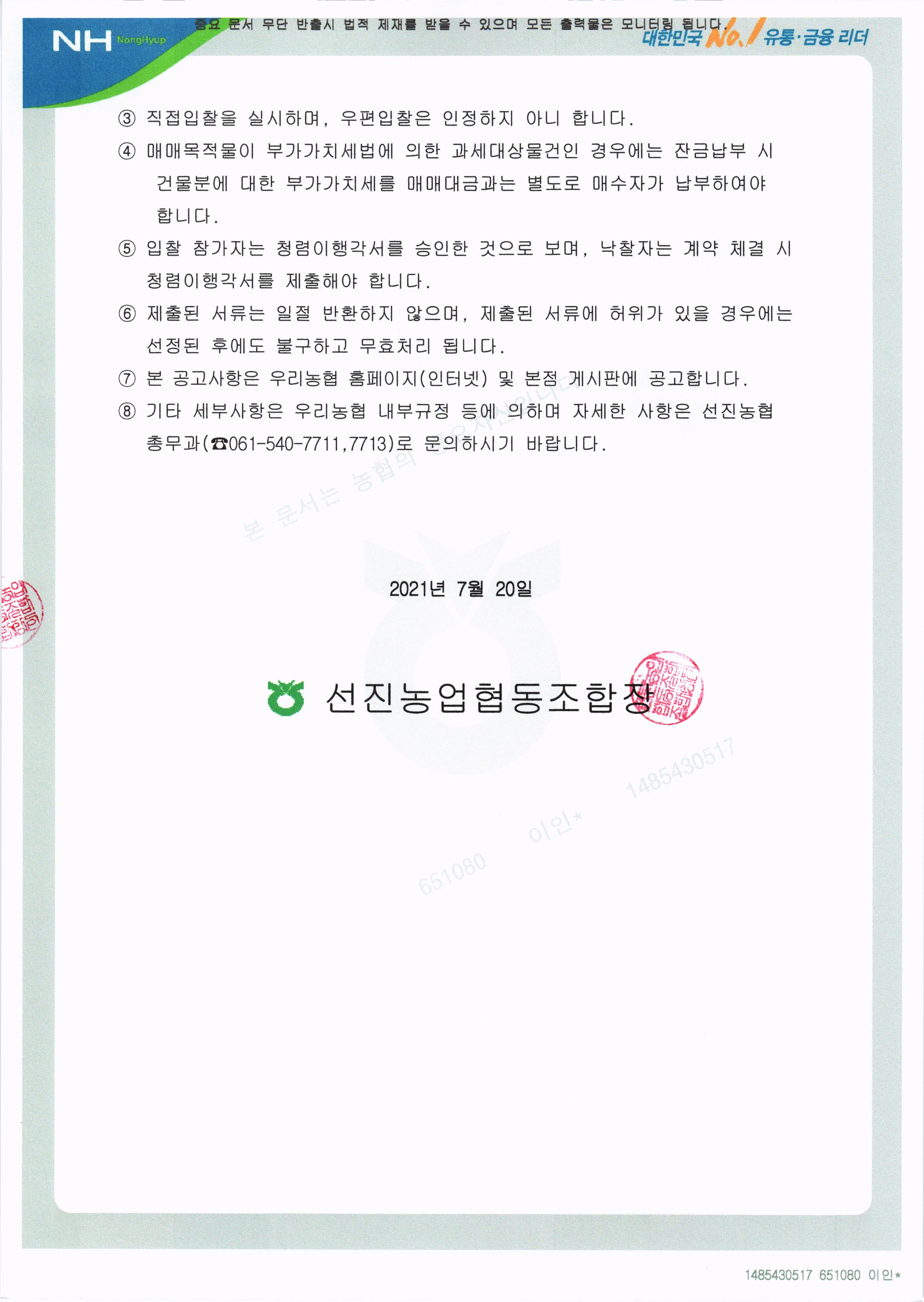 기타 문의사항은 선진농협 경영지원부 총무과(☎061-540-7711, 7713)로 문의해주시기 바랍니다.