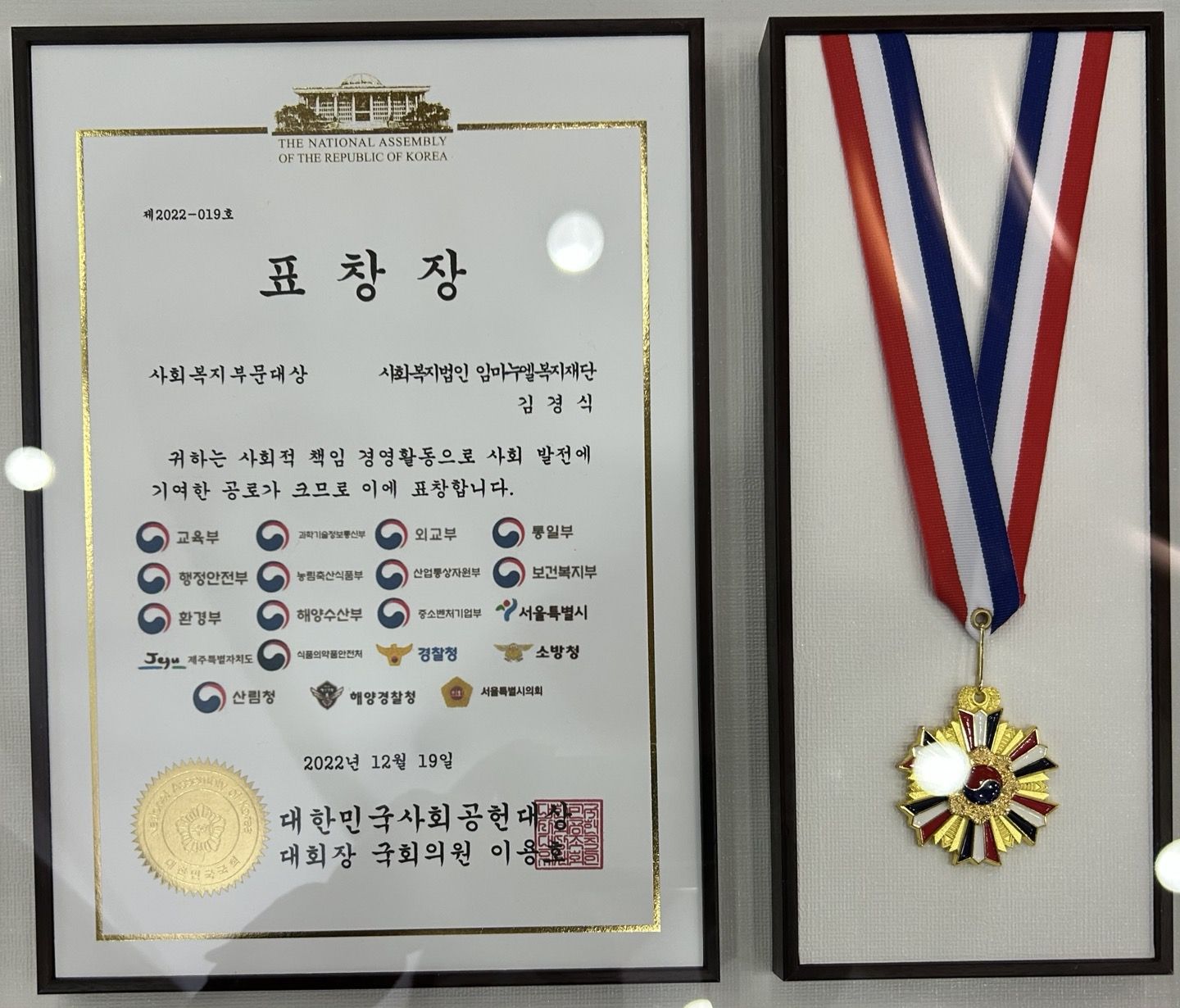 진도군장애인종합복지관을 위탁 운영하고 있는 김경식이사장목사님(임마누엘복지재단)이 대한민국 사회공헌대상을 수상하셨습니다