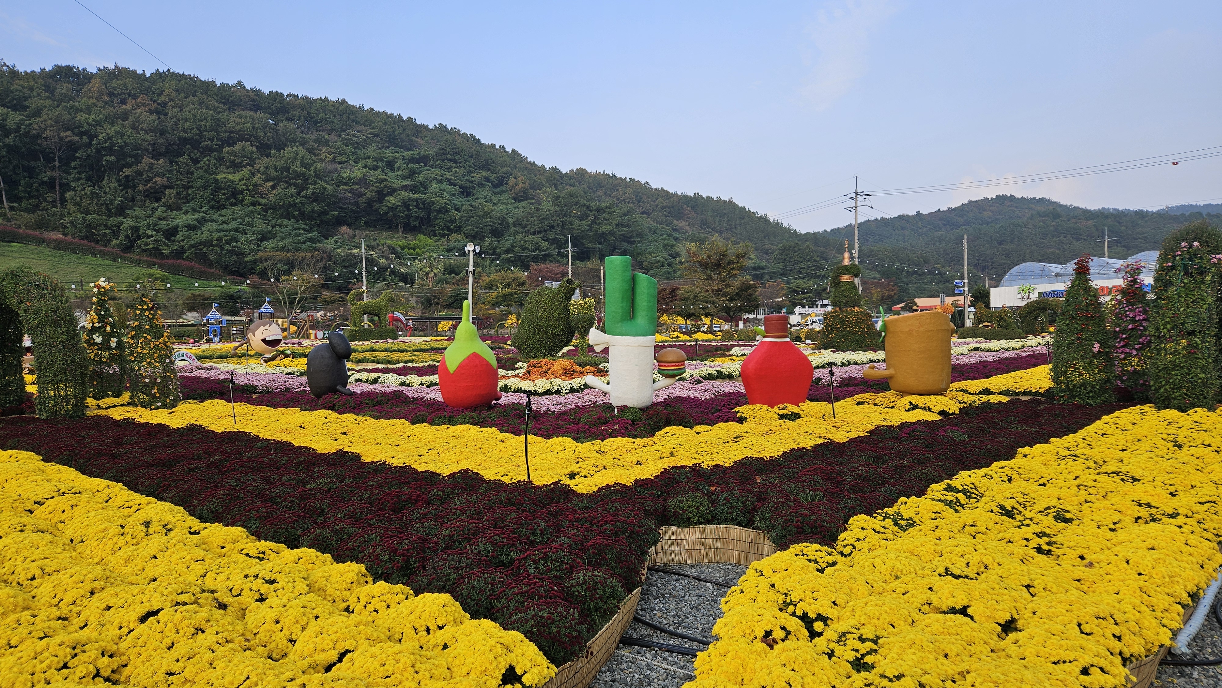 아름다운 산들과 어우러진 국화축제장은